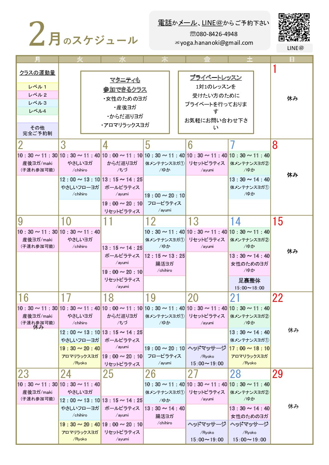2月のスケジュール